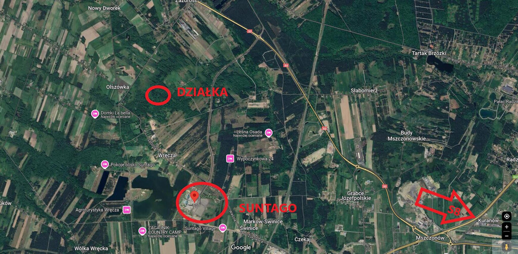 Położona blisko trasy DK S8 w bliskiej odległości Parku wodnego Suntago. idealna pod inwestycję.